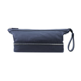 Featuring subtle Gulfstream® details and crafted with the finest navy pebbled leather, this unisex dopp kit is the perfect travel companion for everyone. This bag was thoughtfully designed with two compartments that open wide for easy access; interior pockets to keep small items secure and easy to locate; a water-resistant interior to make clean up a breeze; and a snap loop to hang your bag when counter space is limited.